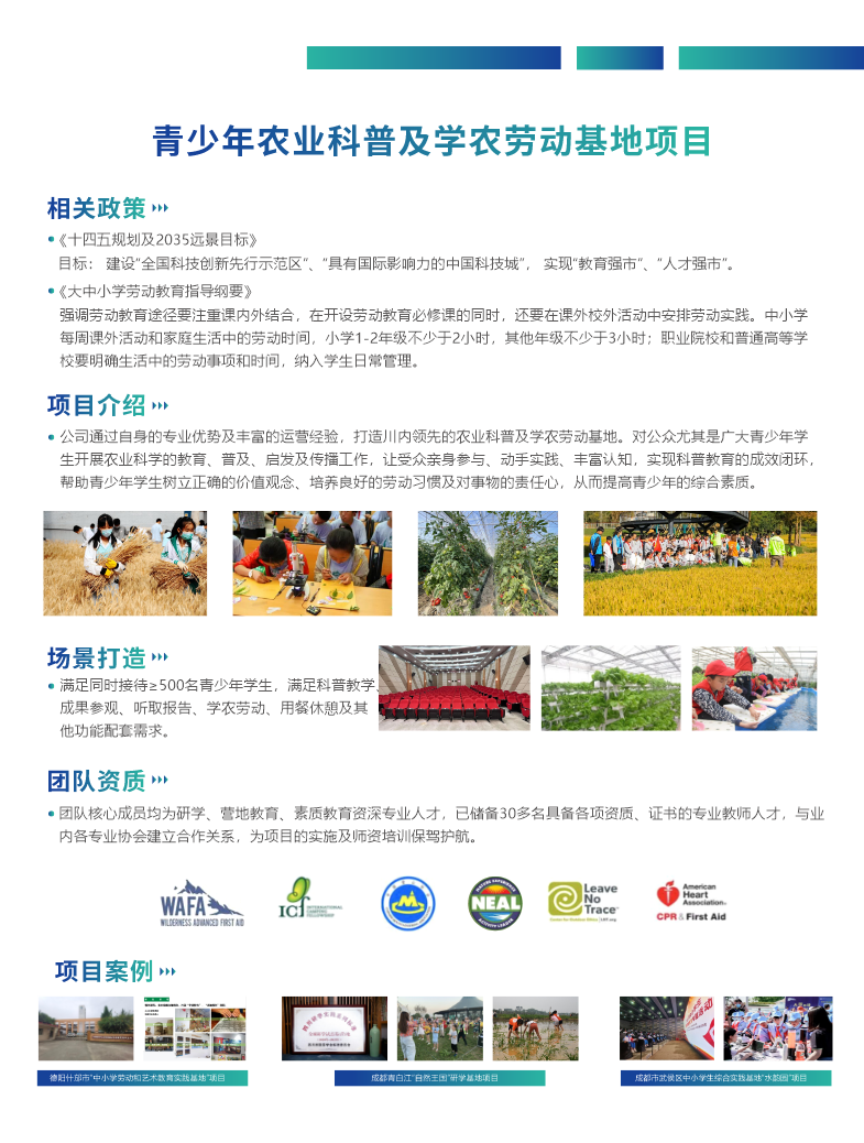 青少年农业科普及学农劳动基地项目